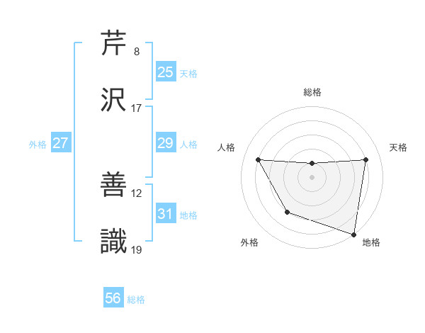 芹沢 善識さんを姓名の画数から五運を鑑定