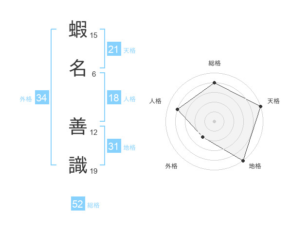 蝦名 善識さんの天格は21画の5点!
