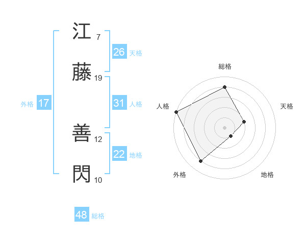 江藤 善閃さんの外格は17画の4点!