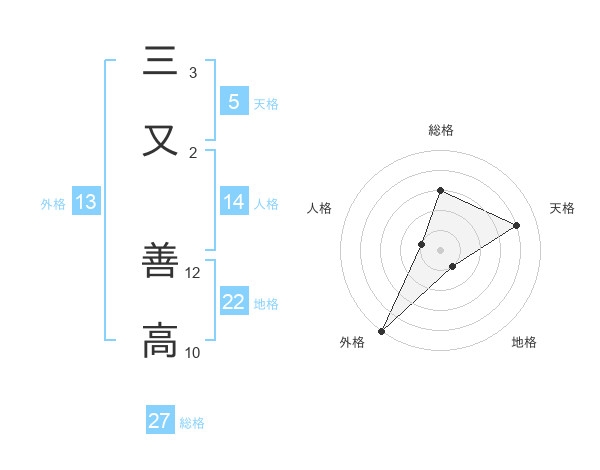 三又 善高さんの外格は13画の5点!