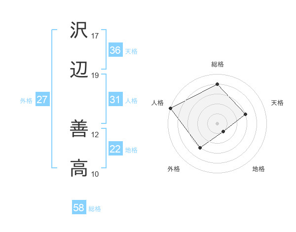 沢辺 善高さんを姓名の画数から五運を鑑定