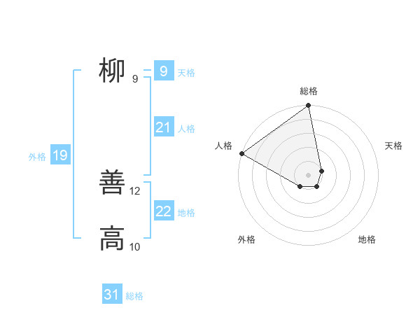 柳 善高さんの総格は31画の5点!