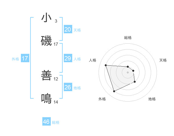 小磯 善鳴さんを姓名の画数から五運を鑑定