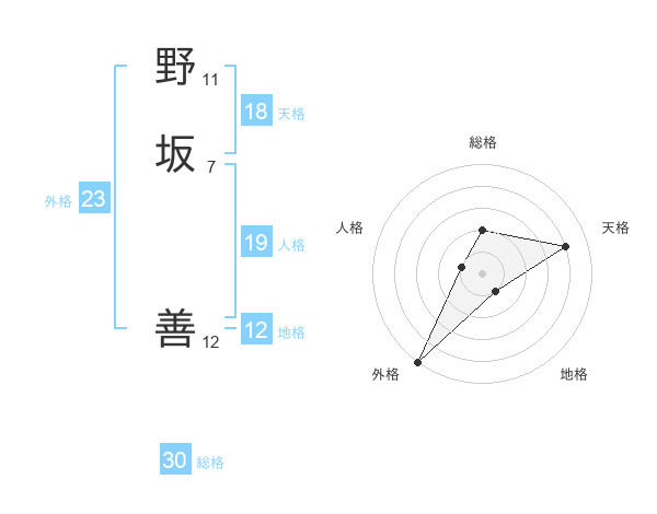 野坂 善さんの外格は23画の5点!