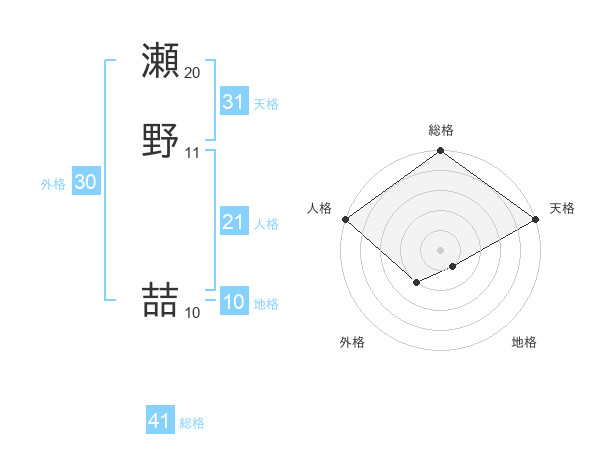 瀬野 喆さんの天格は31画の5点!