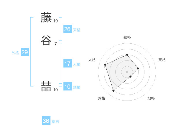 藤谷 喆さんの総格は36画の3点!