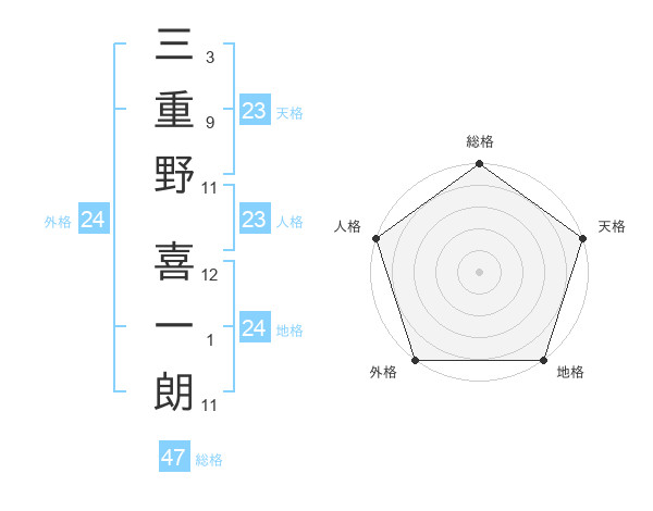 三重野 喜一朗さんを姓名の画数から五運を鑑定