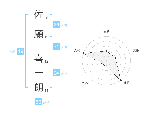 佐願 喜一朗さんを姓名の画数から五運を鑑定