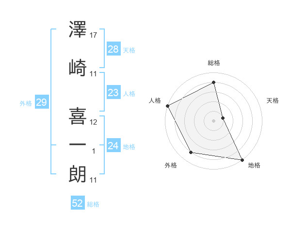 澤崎 喜一朗さんを姓名の画数から五運を鑑定