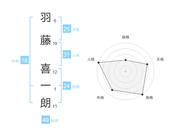 羽藤 喜一朗さんの地格は24画の5点!