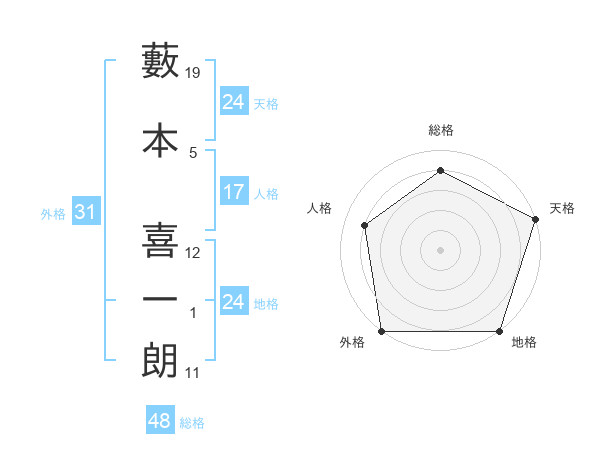 藪本 喜一朗さんを姓名の画数から五運を鑑定