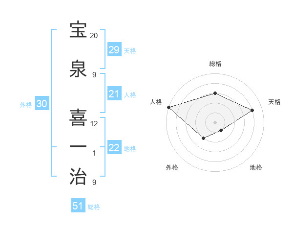 宝泉 喜一治さんを姓名の画数から五運を鑑定
