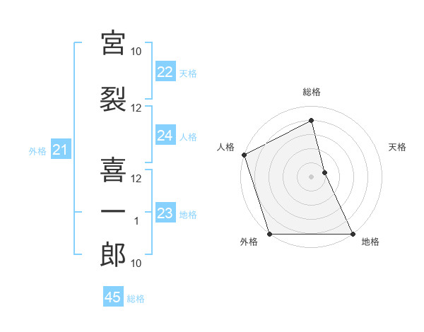 宮裂 喜一郎さんを姓名の画数から五運を鑑定