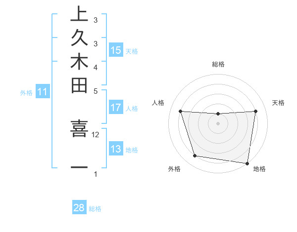 上久木田 喜一さんを姓名の画数から五運を鑑定