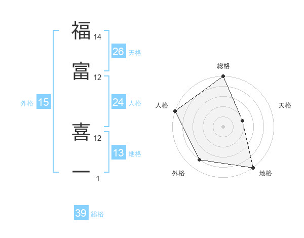 福富 喜一さんの総格は39画の5点!