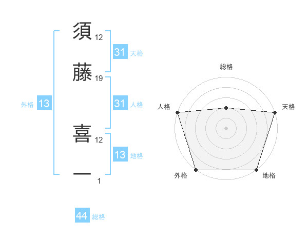 須藤 喜一さんを姓名の画数から五運を鑑定