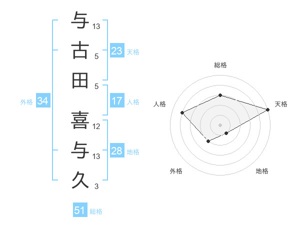 与古田 喜与久さんを姓名の画数から五運を鑑定
