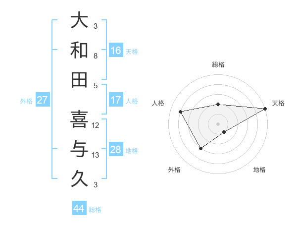 大和田 喜与久さんを姓名の画数から五運を鑑定
