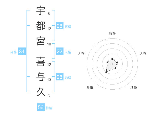 宇都宮 喜与久さんを姓名の画数から五運を鑑定