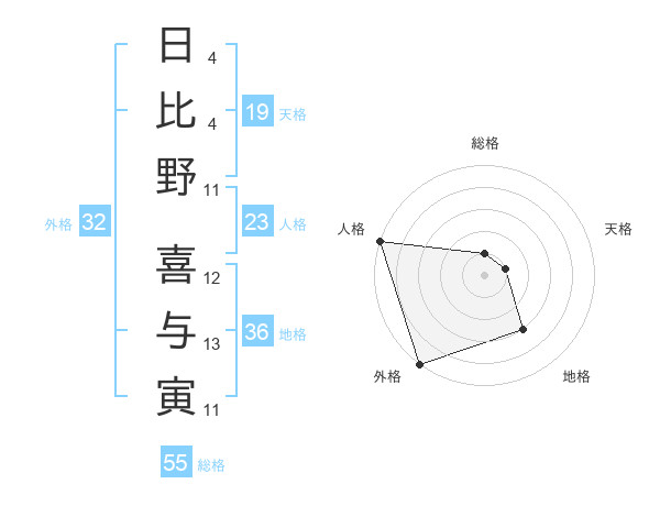 日比野 喜与寅さんを姓名の画数から五運を鑑定