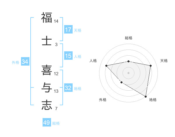 福士 喜与志さんを姓名の画数から五運を鑑定