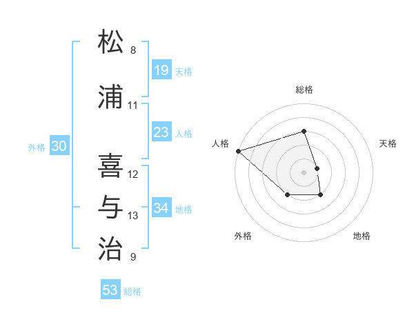 松浦 喜与治さんの総格は53画の3点!