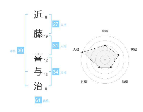 近藤 喜与治さんの総格は61画の3点!