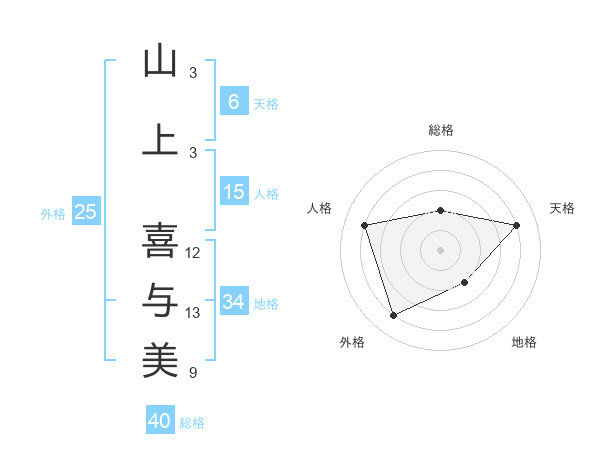 山上 喜与美さんを姓名の画数から五運を鑑定