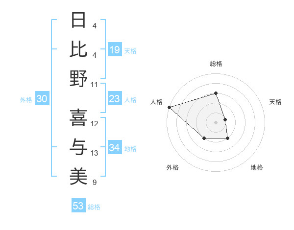 日比野 喜与美さんを姓名の画数から五運を鑑定
