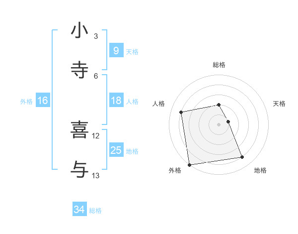 小寺 喜与さんの総格は34画の2点!