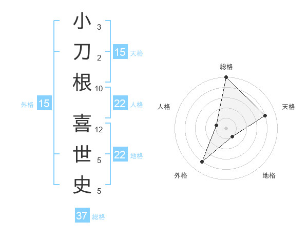 小刀根 喜世史さんを姓名の画数から五運を鑑定