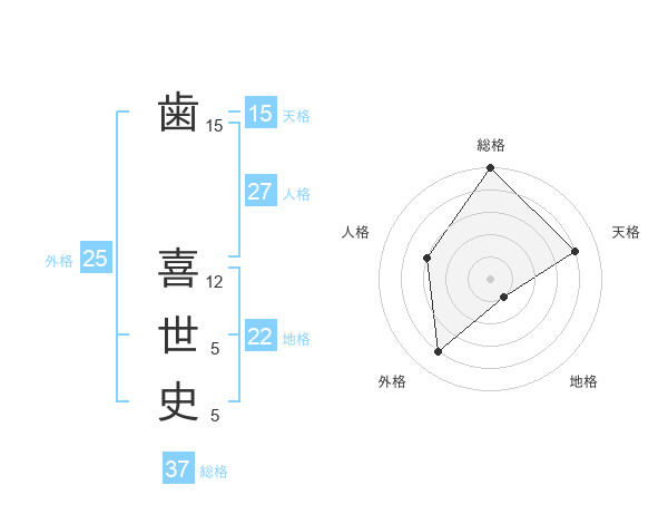 歯 喜世史さんの総格は37画の5点!