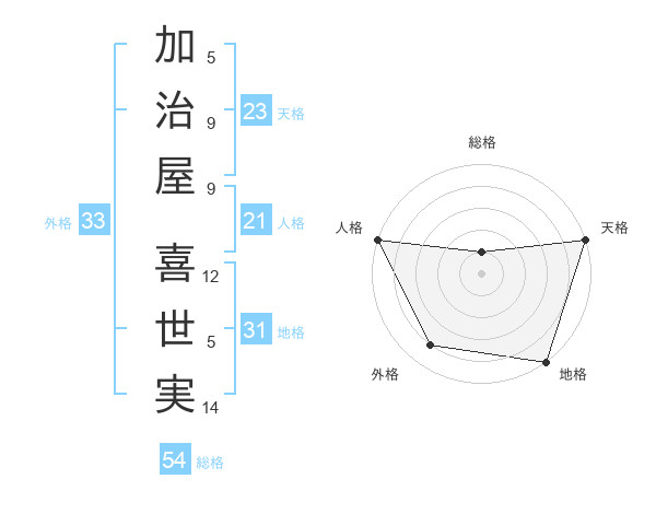 加治屋 喜世実さんを姓名の画数から五運を鑑定