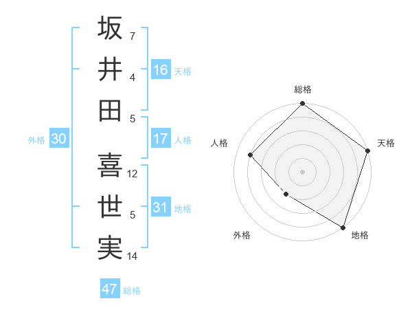 坂井田 喜世実さんを姓名の画数から五運を鑑定