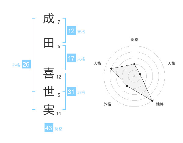 成田 喜世実さんを姓名の画数から五運を鑑定