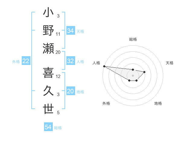 小野瀬 喜久世さんを姓名の画数から五運を鑑定