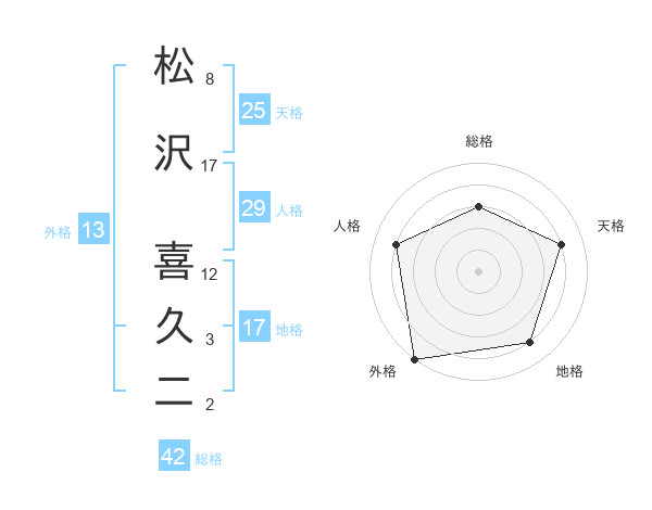 松沢 喜久二さんを姓名の画数から五運を鑑定