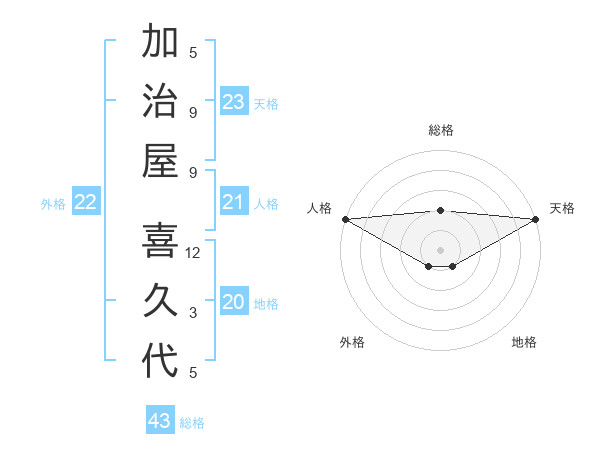 加治屋 喜久代さんの人格は21画の5点!