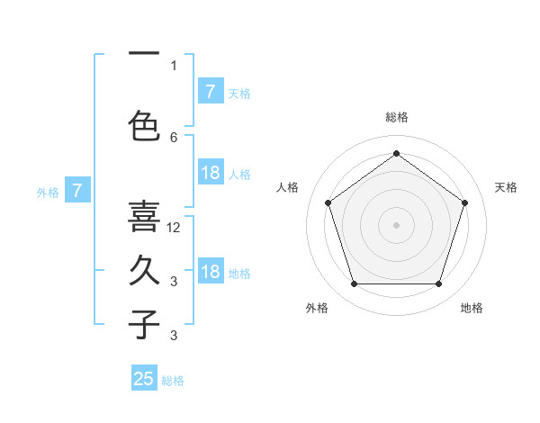 一色 喜久子さんを姓名の画数から五運を鑑定