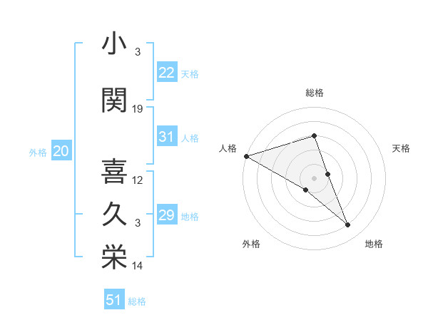 小関 喜久栄さんを姓名の画数から五運を鑑定