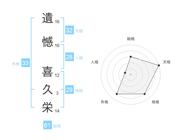 遺憾 喜久栄さんの総格は61画の3点!