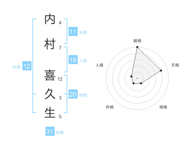 内村 喜久生さんを姓名の画数から五運を鑑定