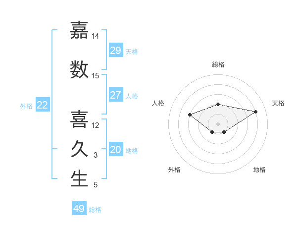 嘉数 喜久生さんを姓名の画数から五運を鑑定