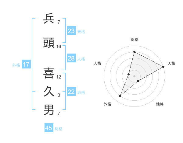 兵頭 喜久男さんを姓名の画数から五運を鑑定