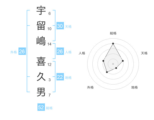 宇留嶋 喜久男さんを姓名の画数から五運を鑑定