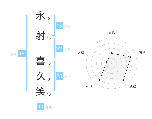 永射 喜久笑さんを姓名の画数から五運を鑑定