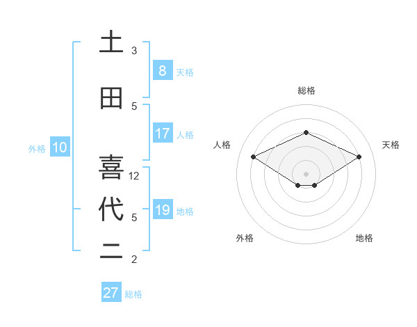 土田 喜代ニさんを姓名の画数から五運を鑑定