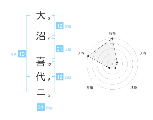 大沼 喜代ニさんを姓名の画数から五運を鑑定