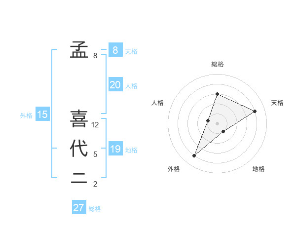 孟 喜代ニさんを姓名の画数から五運を鑑定