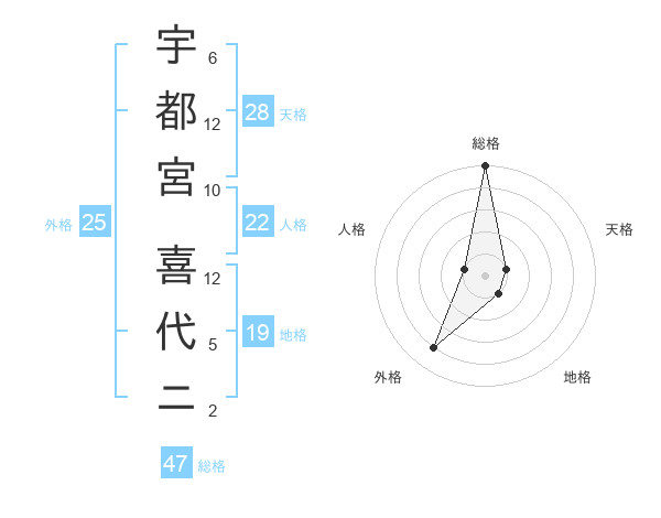 宇都宮 喜代ニさんの総格は47画の5点!